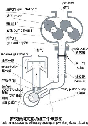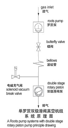 羅茨滑閥真空機(jī)組是由普通羅茨泵為主泵、滑閥真空泵為前級(jí)泵串聯(lián)組成的真空機(jī)組。通過(guò)真空繼電器或電接點(diǎn)壓力表,來(lái)實(shí)現(xiàn)羅茨泵滑閥泵的自動(dòng)啟閉,自動(dòng)過(guò)載保護(hù)。整套機(jī)組安裝在一個(gè)機(jī)架上,配以管道、閥門(mén)、電器操作控制箱、冷卻水管系統(tǒng)。機(jī)組結(jié)構(gòu)緊湊,使用方便。
