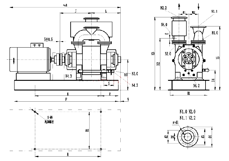 N1.0進(jìn)氣端法蘭 N1.1連通管法蘭 N2.0排氣端法蘭