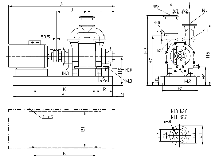 N2.2分離器法蘭 N3.0工作液接口 N4.0分離器排液口