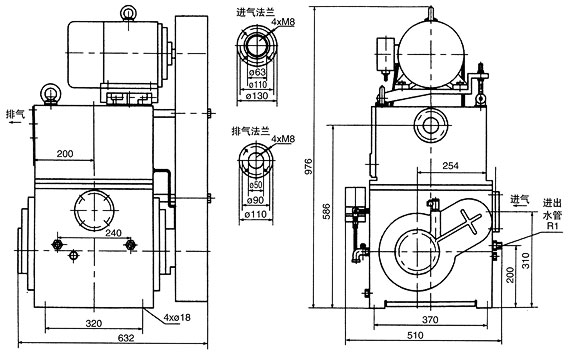 二、2H-30A型滑閥真空泵的尺寸圖: