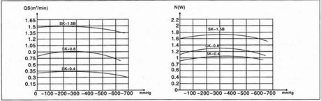 四、SK型直聯(lián)水環(huán)真空泵的性能曲線: